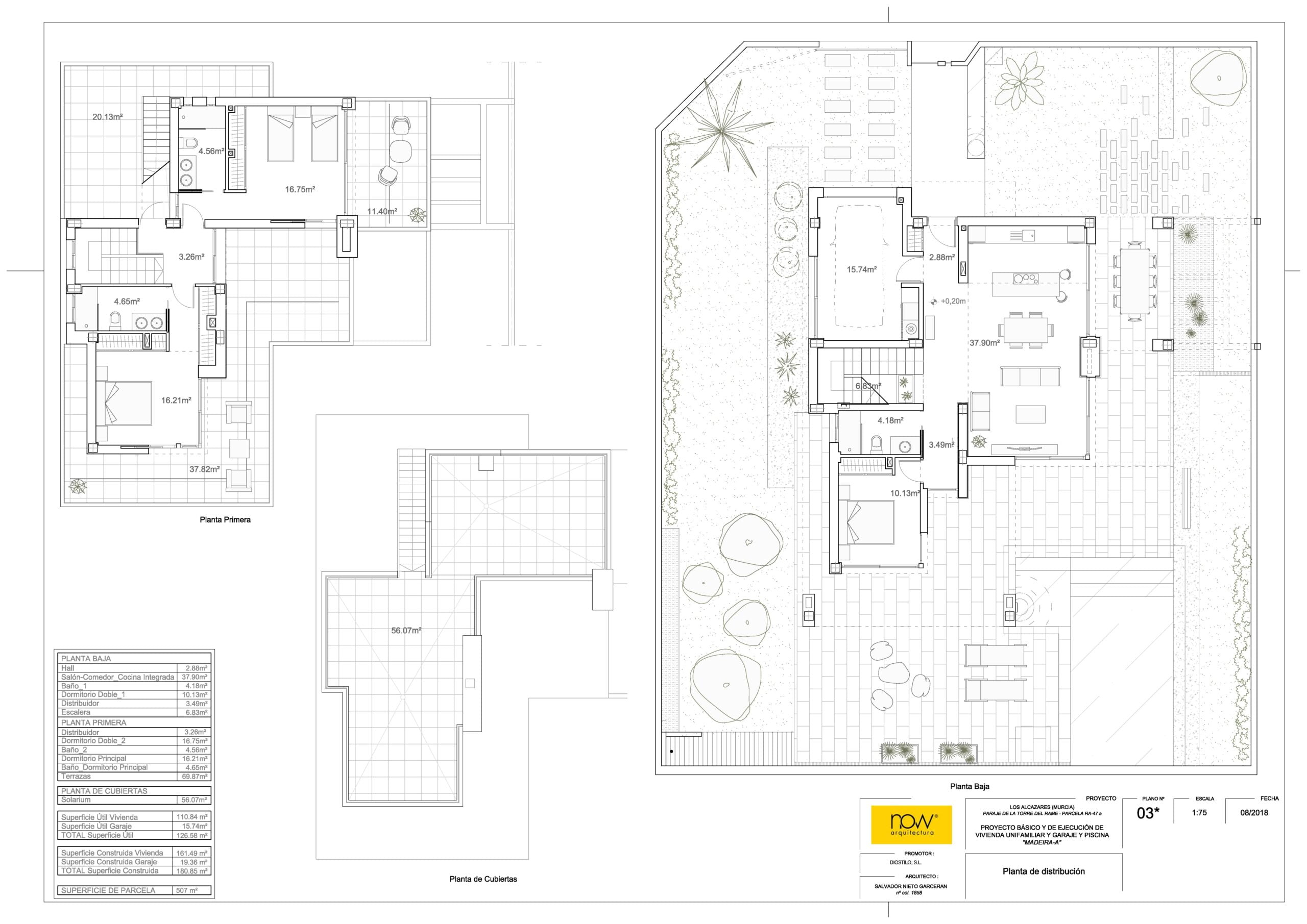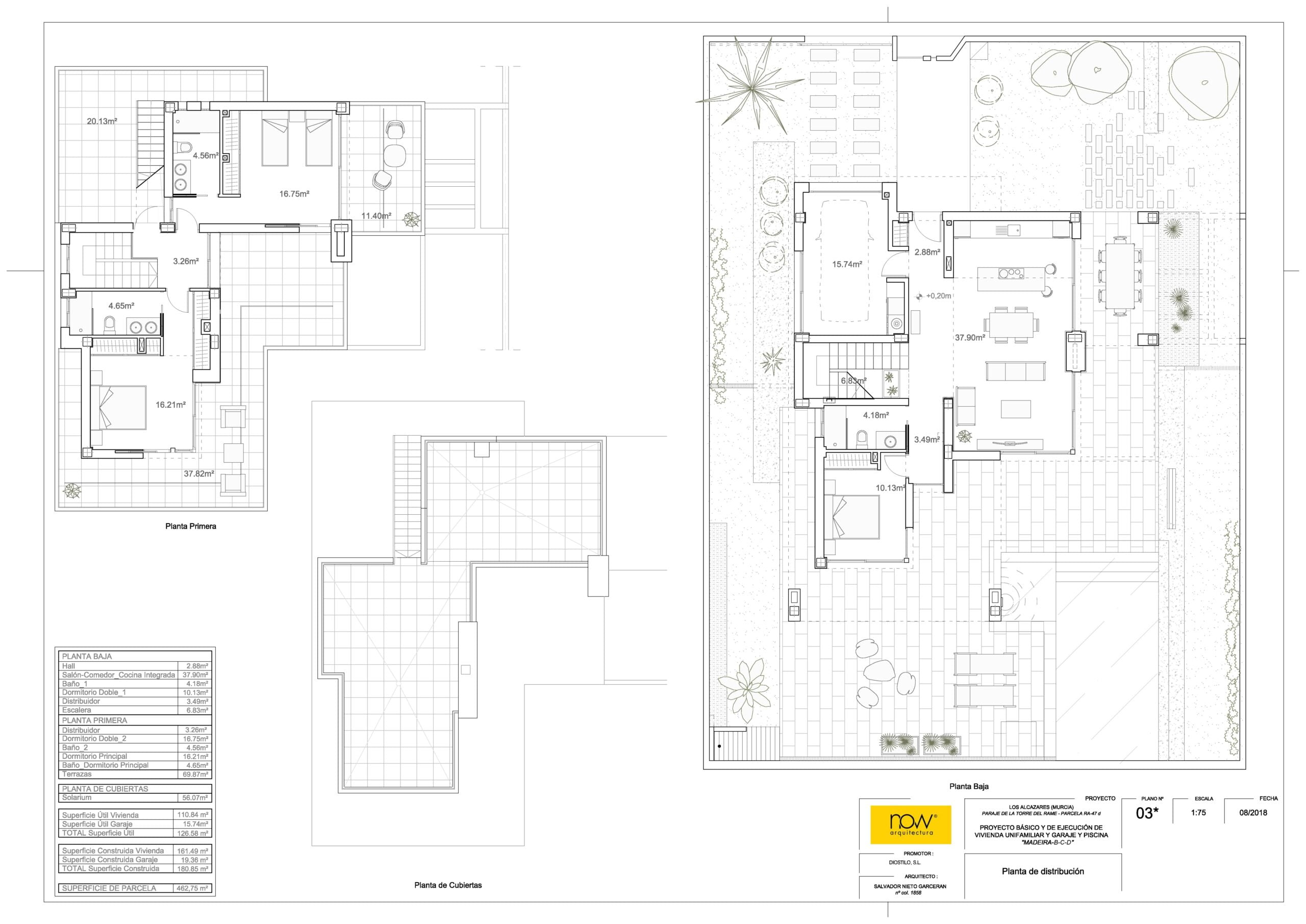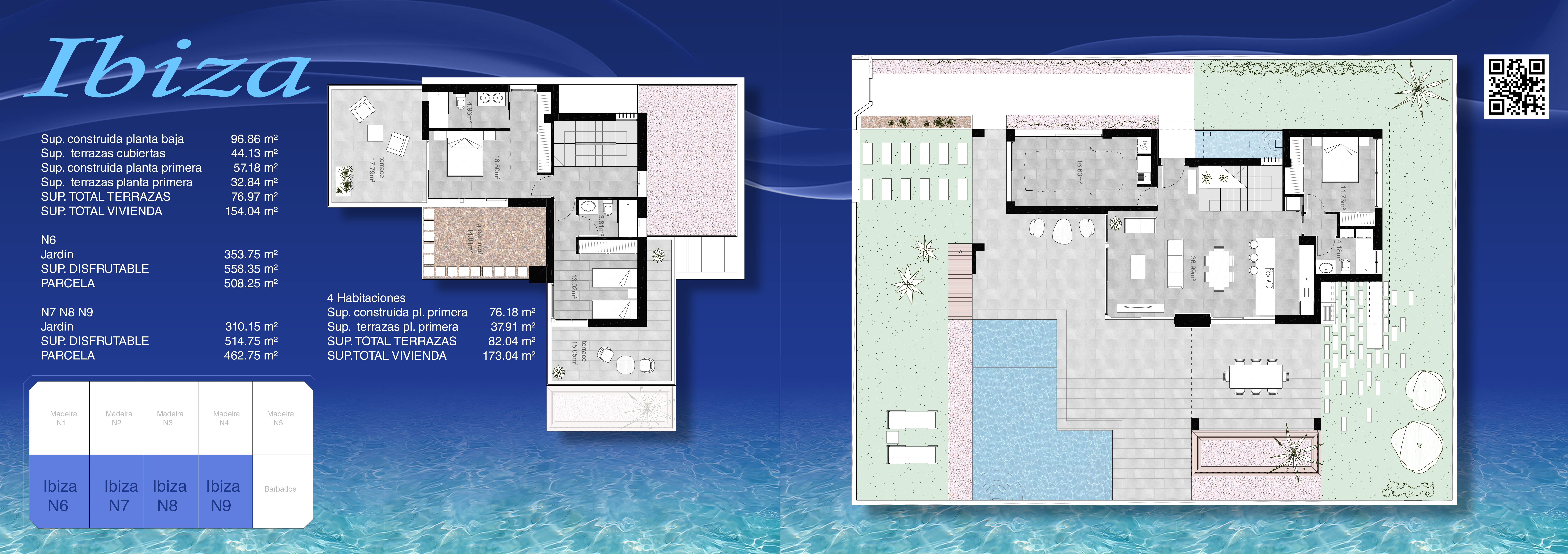 | Type | Plot m² | Build m² | Terrace m² | Solarium m² | Garden m² | Beds | Baths |