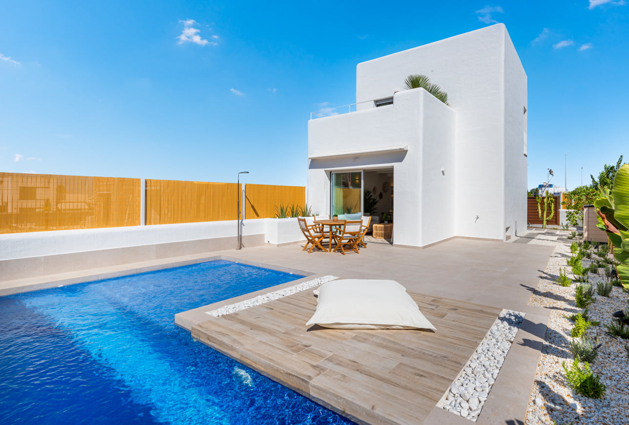 These are very special villas where the architect has combined Mediterranean design with natural fiber elements to recreate the feeling of being on a tranquil island.
