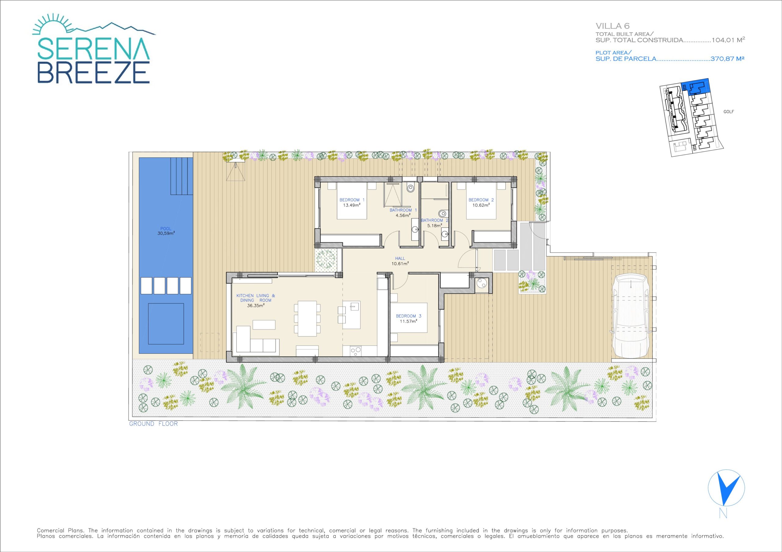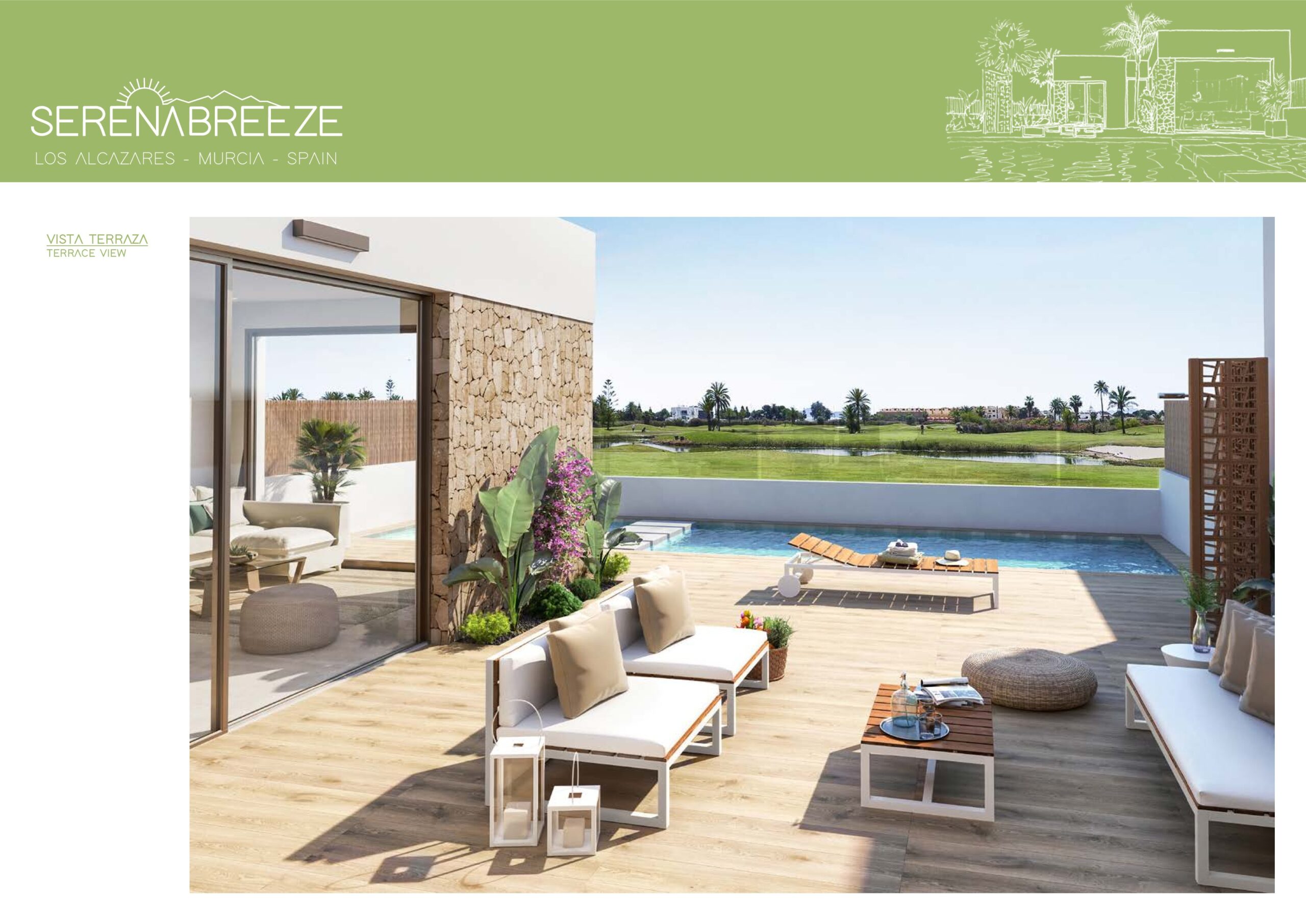 Serena Breeze Villas offer fantastic frontline golf villas – 3 bedroom villas with 2 bathrooms + private swimming pool and roof solarium & parking.