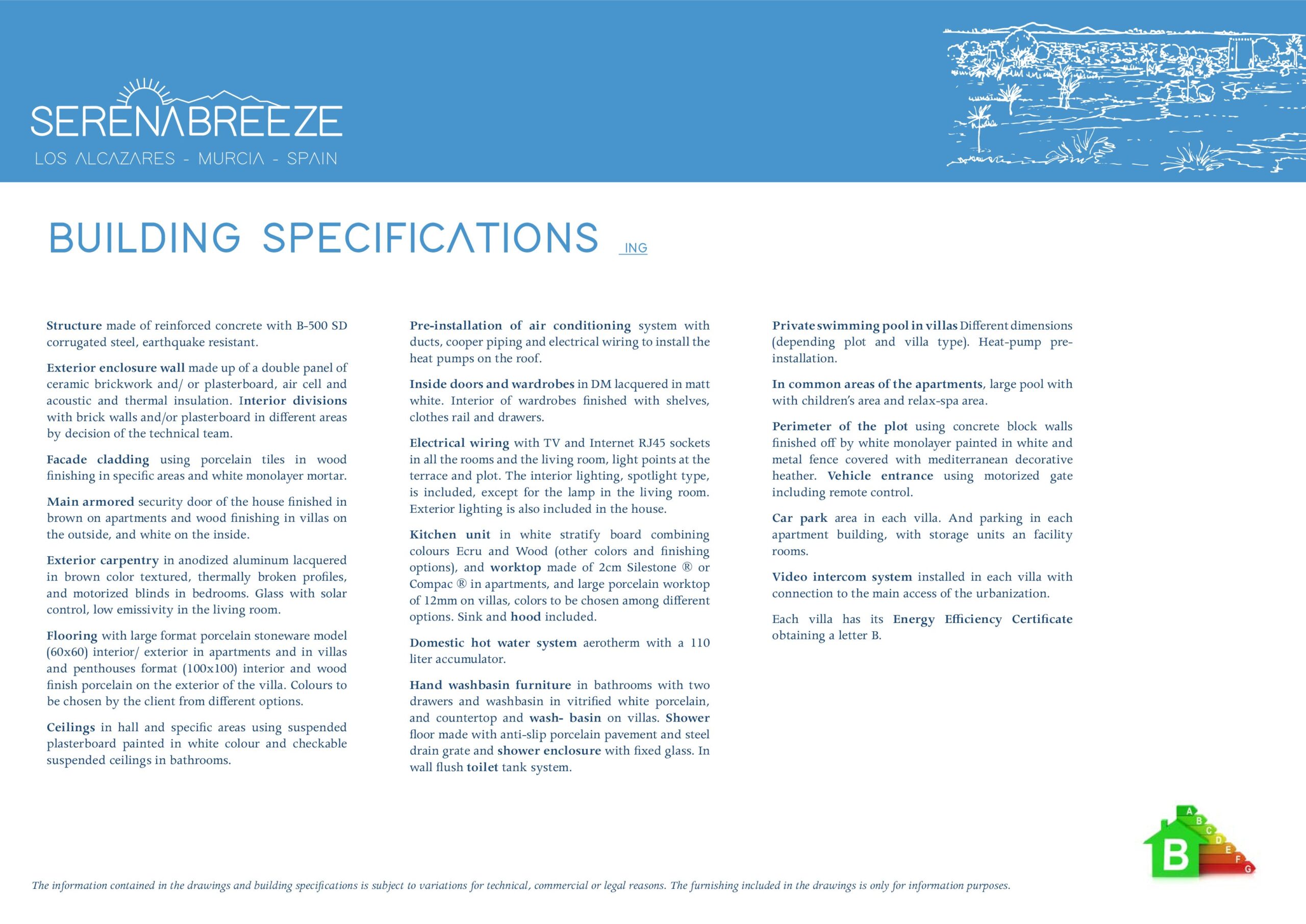 Prices includes private pool, electric shutters in living room and bedrooms and complete bathroom, including shower screen.
